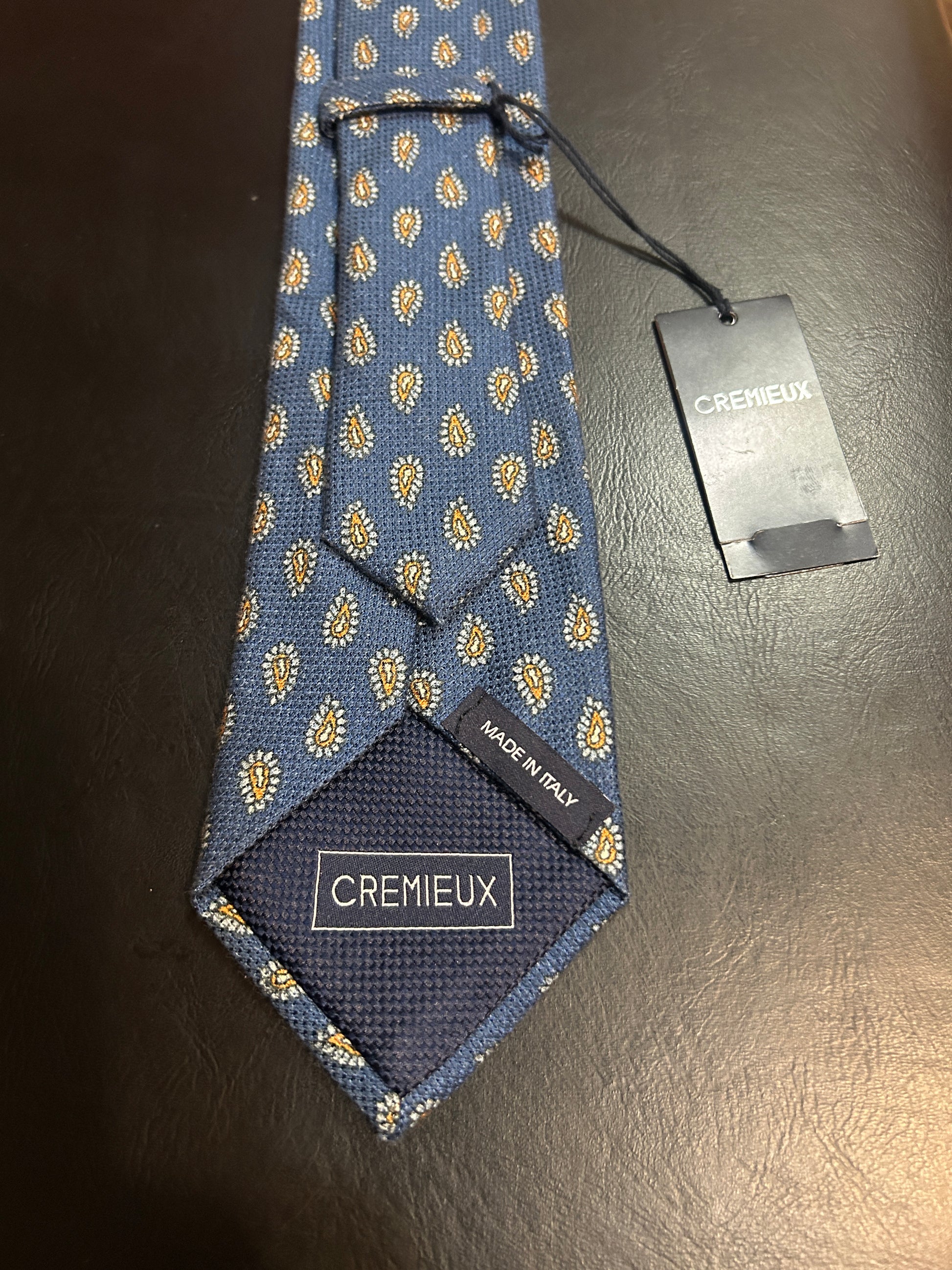 This distinguished Cremieux tie features a sophisticated cotton/silk blend that combines the breathable structure of cotton with silk's refined luster. The hybrid composition delivers exceptional texture and dimensional stability while maintaining a luxurious hand-feel. The balanced weave creates a versatile accessory appropriate for both formal settings and smart-casual ensembles throughout all four seasons.